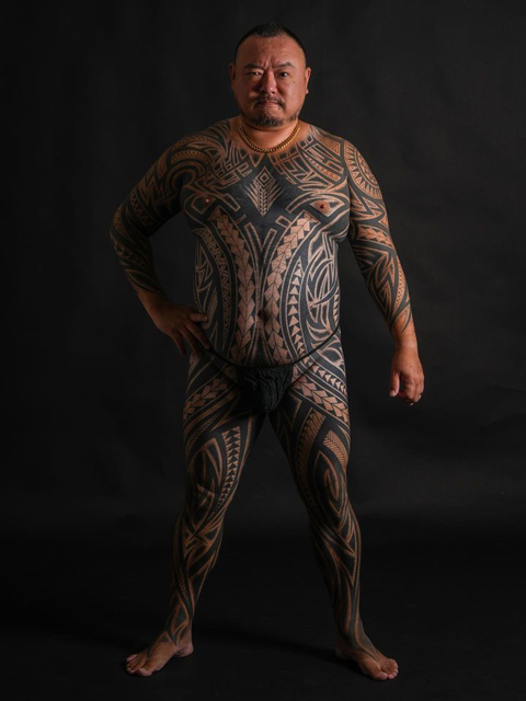 サモアデザインとクレイジートライバルとドットワークのコンビネーションで構成されたこのタトゥーにはアブストラクトなパワーがあります。