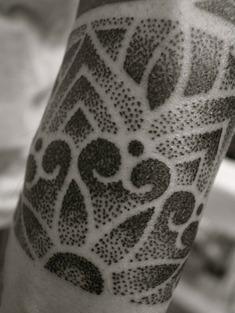 手首にあしらった、ヘナトライバルデザインをドットで処理したタトゥーです。