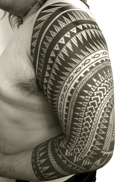 サモアトライバルタトゥーの七分スリーブデザインです。