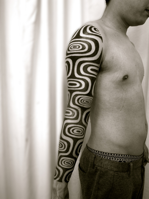 縄文トライバルタトゥーのフルスリーブです。