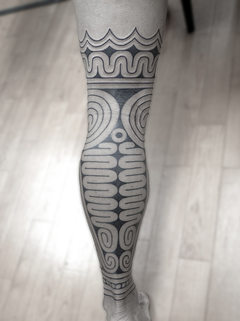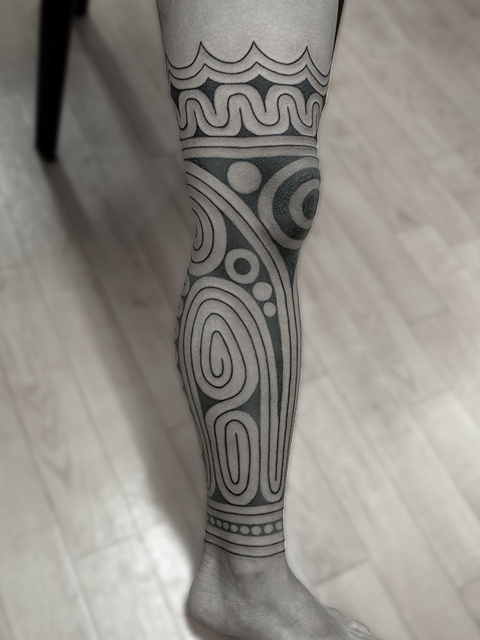 縄文トライバルタトゥーのレッグスリーブデザインです。