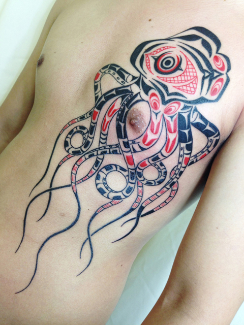 多大なデザイン的影響を受けつつ、ついぞ悲願のハイダトライバル使用のタコを手掛ける時が…愛するタコ…。